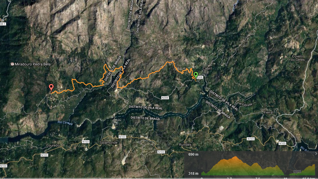 Daí descemos para a ponte sobre o Rio Fafião, subimos para a Cabana do Pinhô, passamos a ponte das Servas, a Tribela e a cascata da Rajada e, finalmente, subimos para a Ermida.
